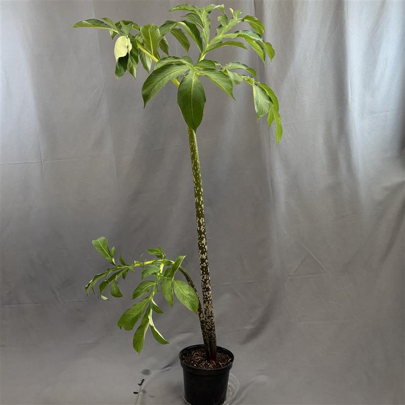 The genus Amorphophallus, a name derived from Greek words meaning "misshapen" and "phallus," is a group of plants in the arum family. They are most famous for their unusual and often foul-smelling flowers. Each year, a single large, highly dissected, umbrella-like leaf emerges from the corm, often after the plant has bloomed. It is designed to photosynthesize and store energy in the corm for future growth. After a growing season, the leaf dies back and the plant enters a dormant phase, surviving solely on the energy stored in its corm. When enough energy has been stored, the plant produces a large inflorescence (a cluster of flowers) instead of a leaf. To attract carrion-feeding insect pollinators like flies and beetles, many species emit a powerful, putrid odor, often compared to rotting flesh.