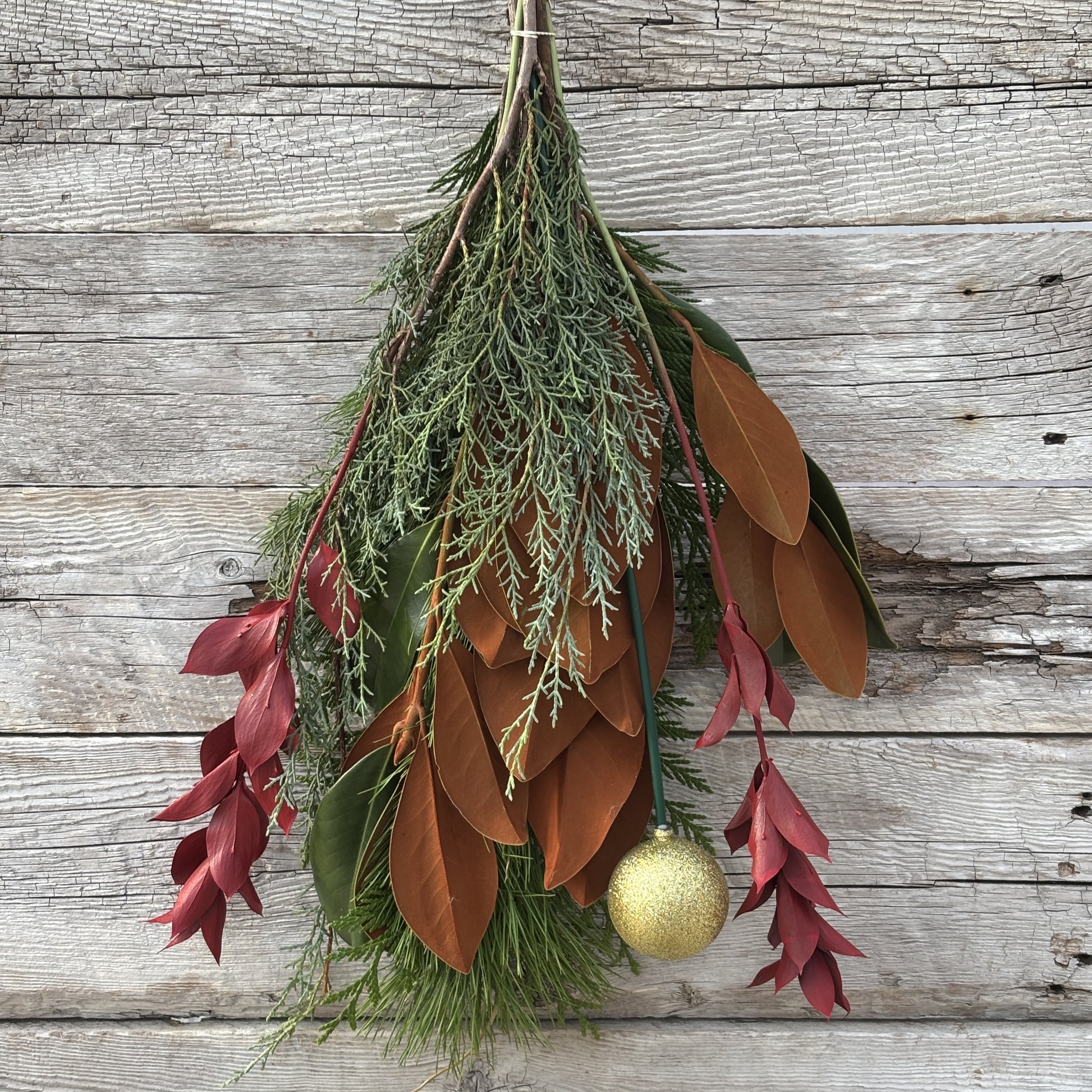 Perfect for wreaths, garlands, or centrepieces, these fresh greens bring the outdoors in, filling your home with natural fragrance and classic style. The magnolia’s broad leaves add a warm, velvety sheen that pairs beautifully with twinkling lights, candles, or simple ribbon accents - a festive and graceful nod to the beauty of the winter season.