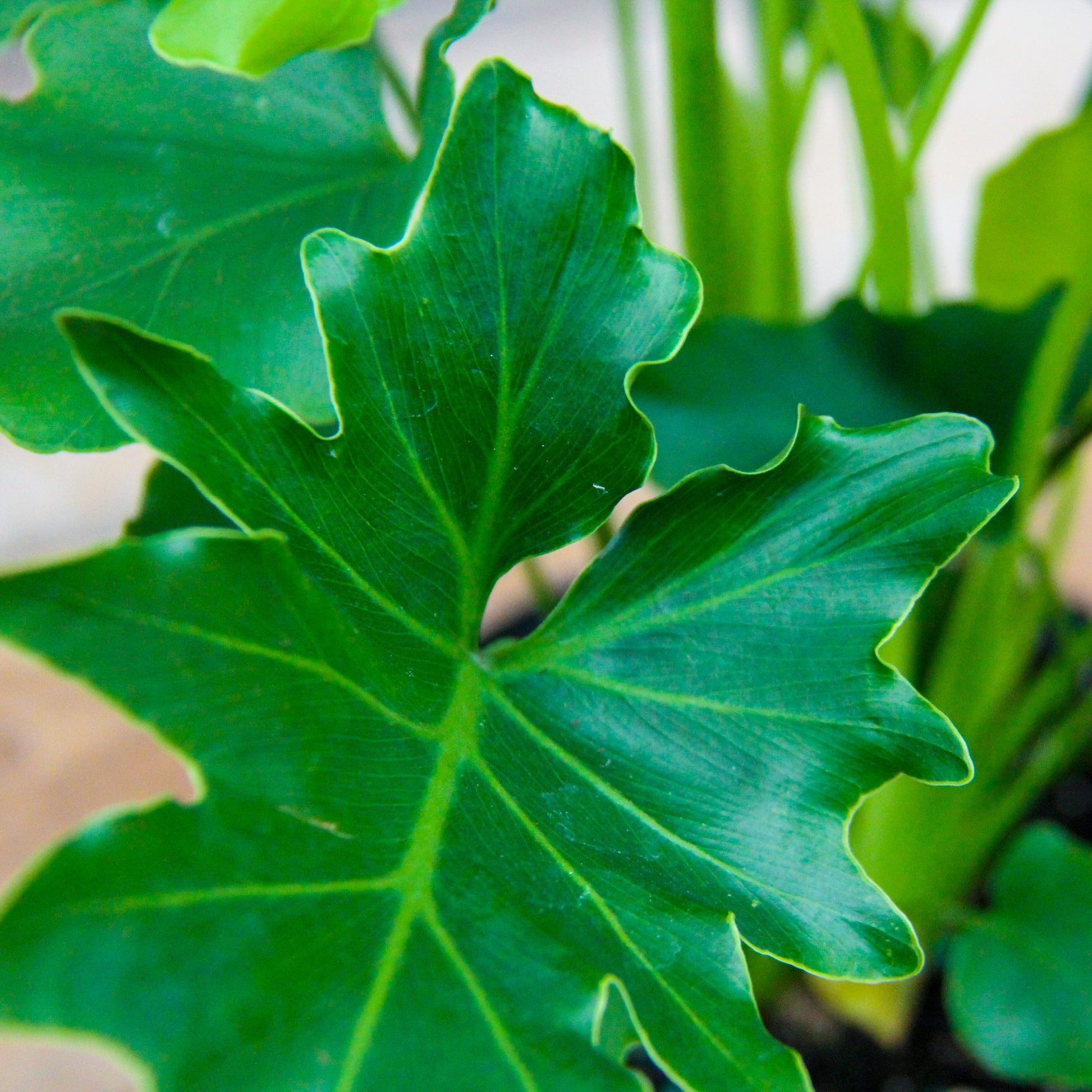 Philodendron Lickety Split features large glossy leaves with large splits.